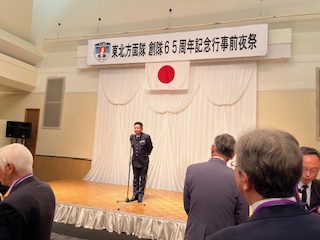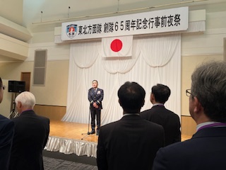 東北方面隊の65周年記念行事に参加!! R7.10.11(土)~12(日)にかけて宮城県仙台市に駐屯する東北方面隊の65周年記念行事に今年も参加して 来た!!前夜祭は、沢山のOBと防衛産業の方々に交じり交流する事が出来た!!翌日の記念式典は、何と 小雨交じりの肌寒い中ではあったが沢山の一般入場者と共に方面隊の隊員たちの勇姿を見る事が出来感動 でした!!さらに今年から装備実演と言う新しい試みは、コンパクトな内容で分かりやすい装備実演であった。 終了と同時位に天候も回復し逆に暑い位の記念行事だった!! « 目黒駐屯地創設30周年、教訓研究本部創立7周年記念行事に出席!!