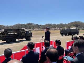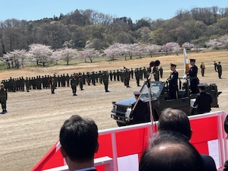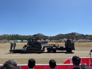 令和8年4月12日(日)かなりの強風ではあったが日の光が差し込んでいたのでと思っていたら式典開始直後 から風も収まり始めて素晴らしい式典となり引き続きの施設団ならではの観閲行進の機種の多様化された装置の行進と空砲ではあったがかなりの迫力が迫った訓練展示も久しぶりに何回も味わう事が出来た!!